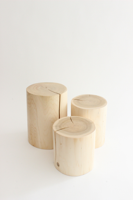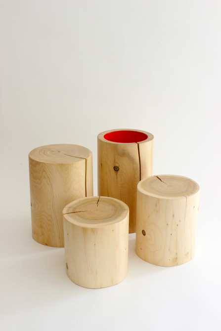 Turned and sanded cedar logs with a water based finish, one features a matte